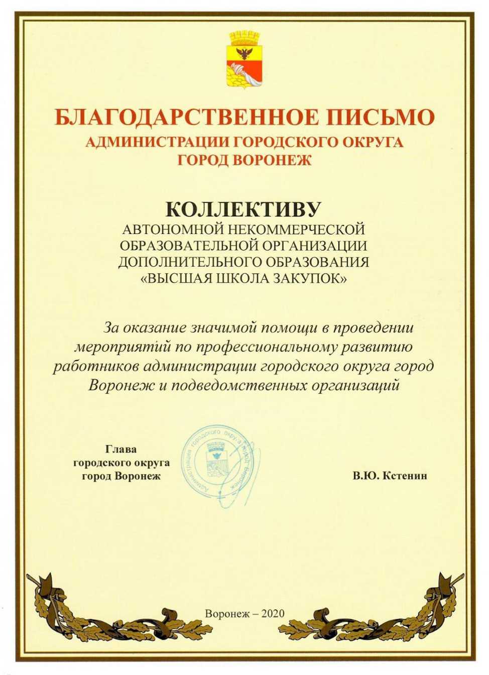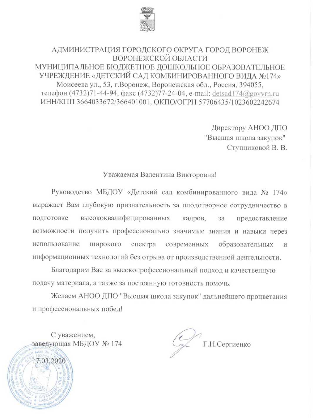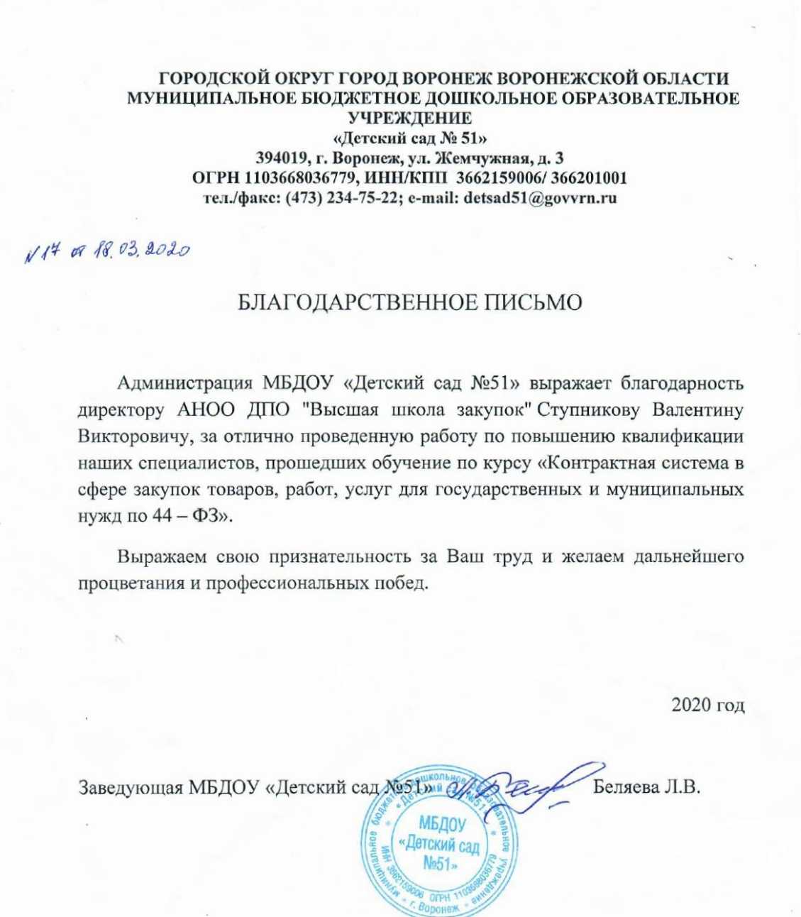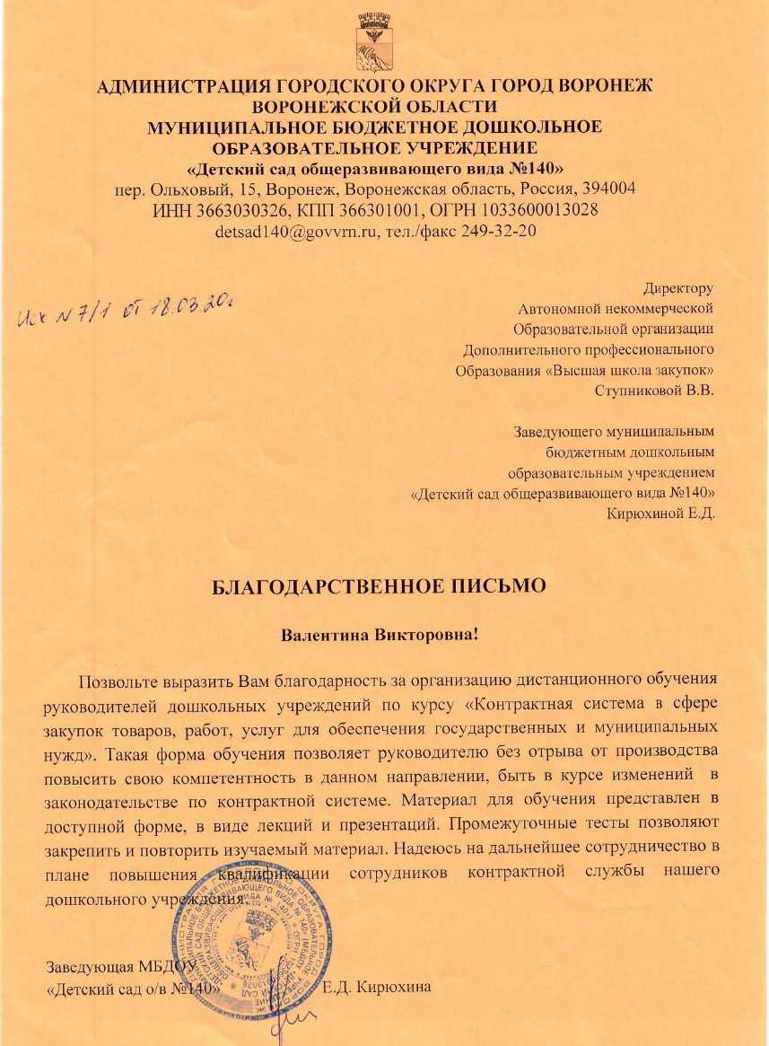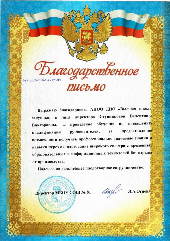 Благодарственные письма