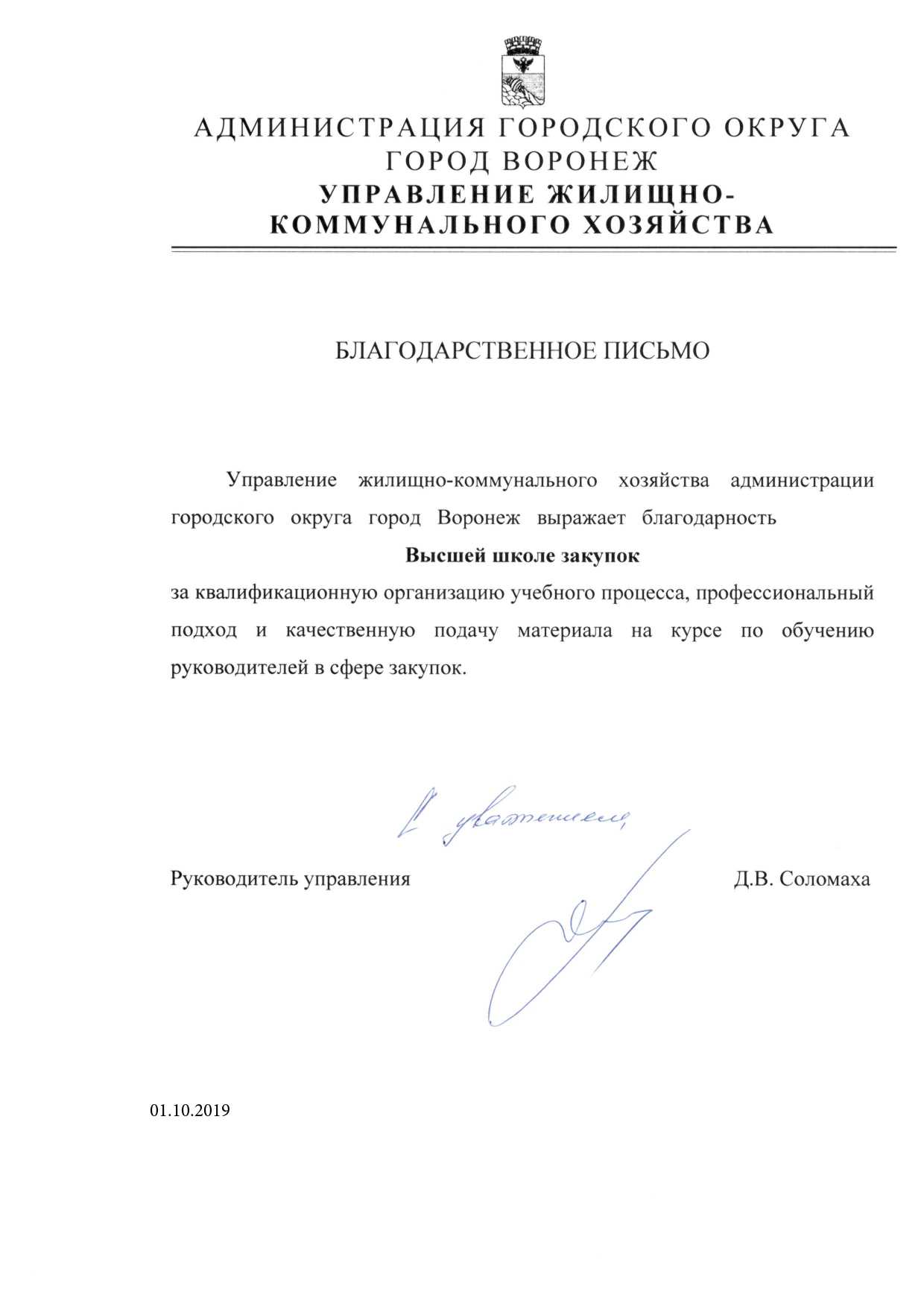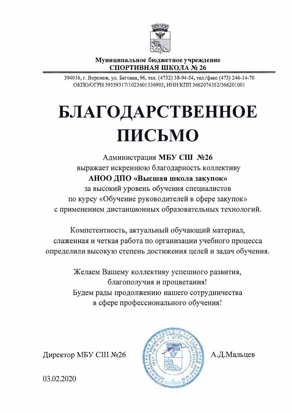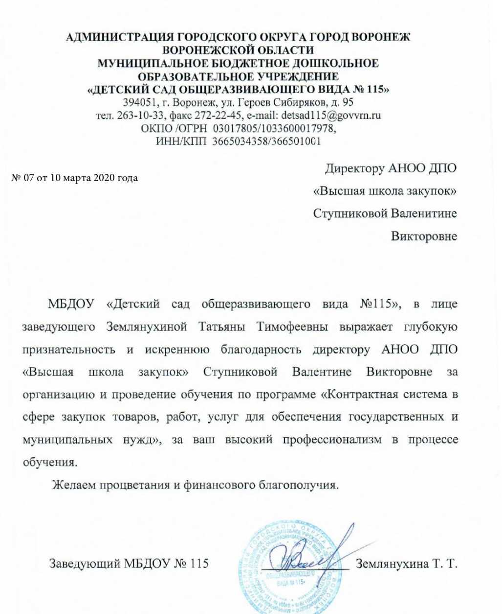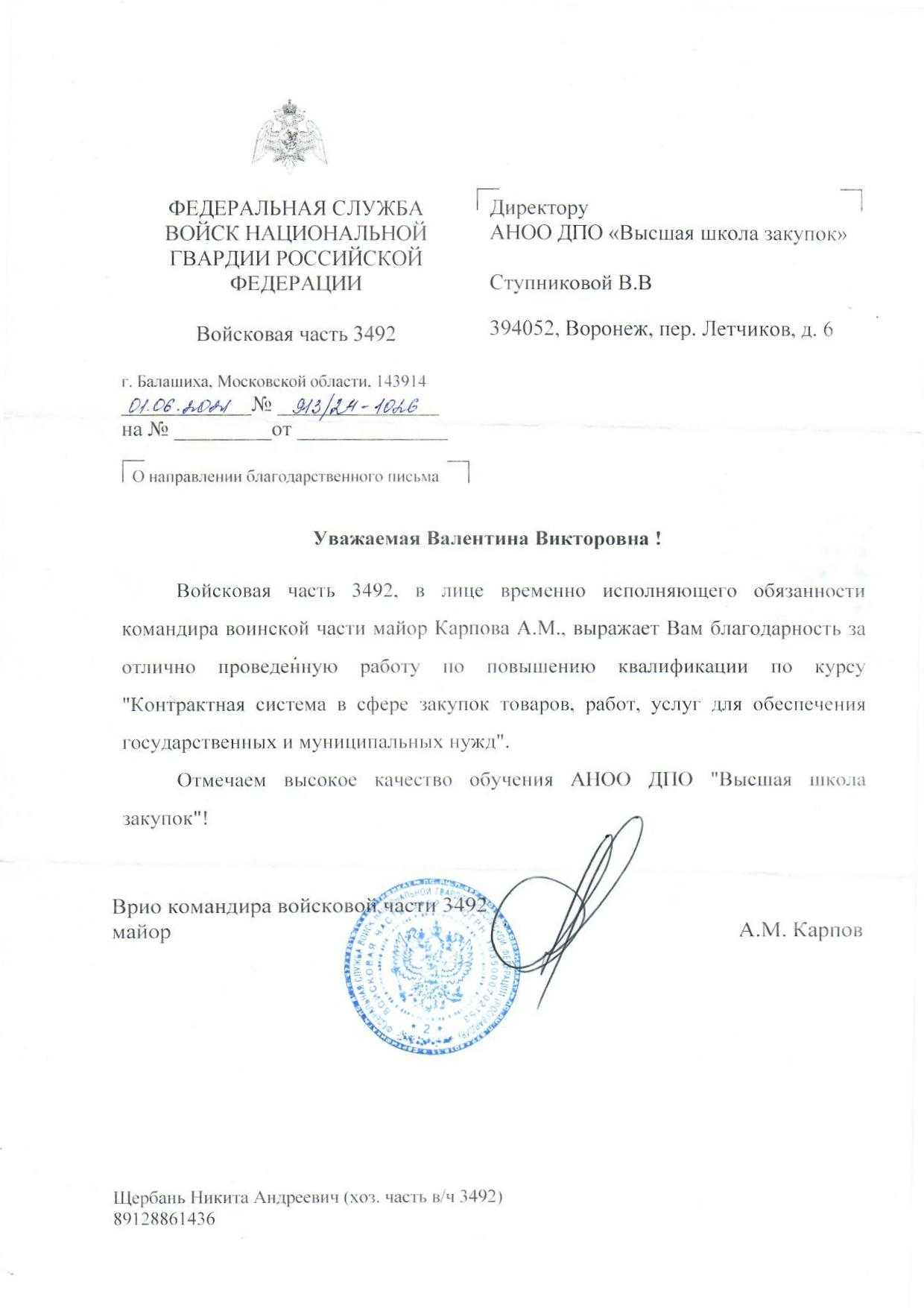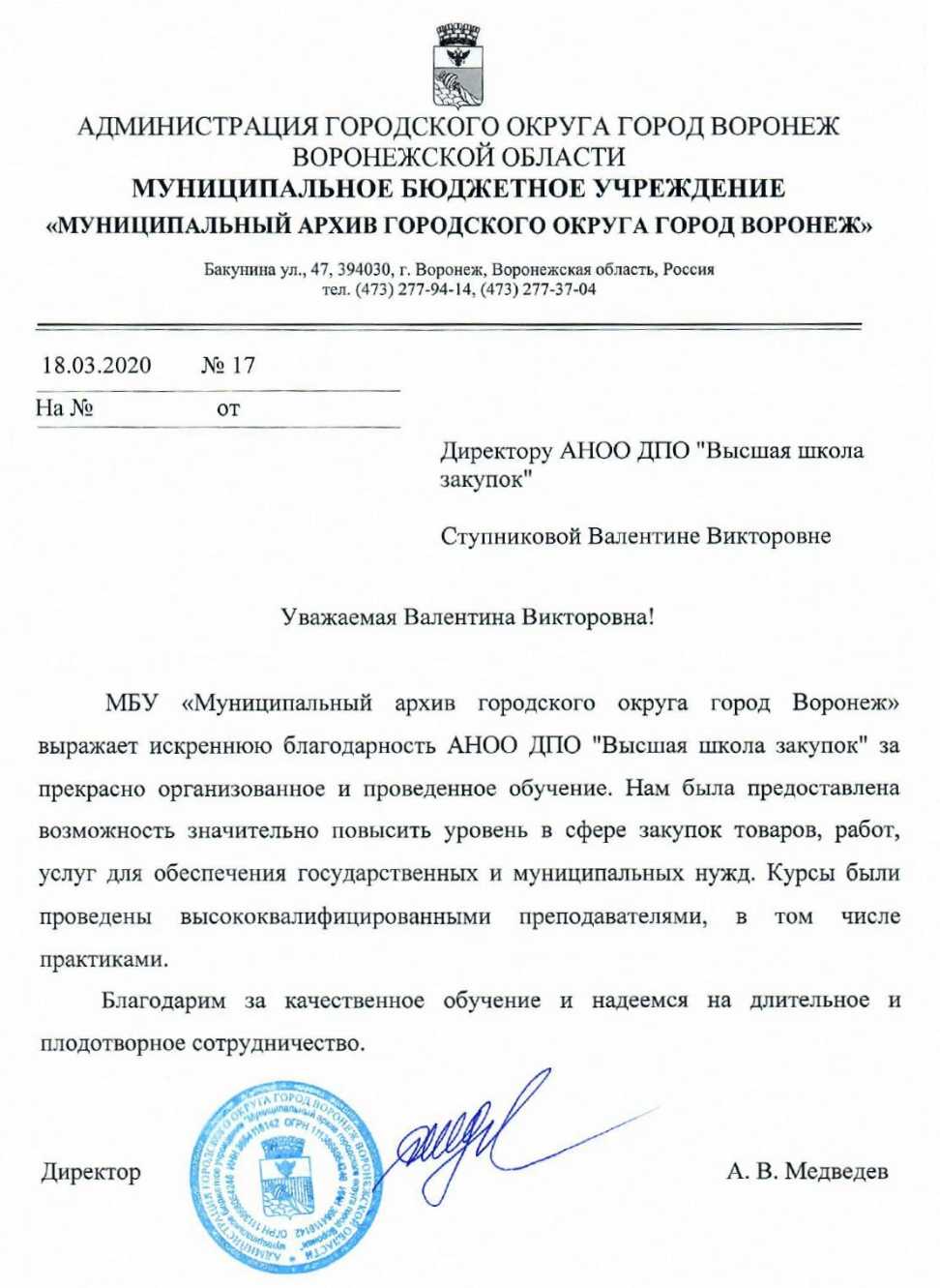 Благодарственные письма