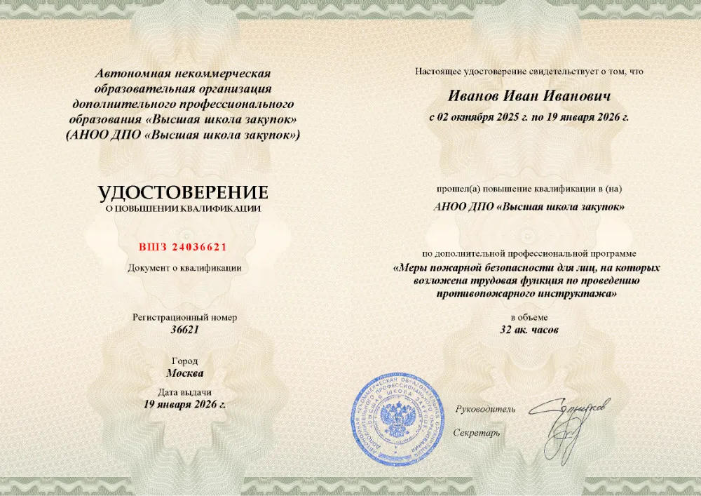 Повышение квалификации, 32 академических часа, 3 модуля: нормативно-правовые основы и обязанности инструктора, содержание и методика проведения противопожарных инструктажей, практические знания и навыки для эффективного обучения персонала. Онлайн-обучение в в Казани с итоговой аттестацией.