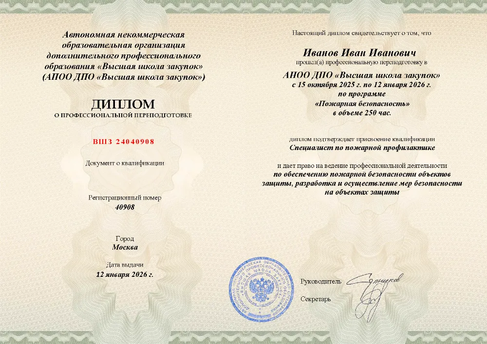 Это полноценная образовательная программа для получения дополнительной квалификации и освоения новой профессии. Для поступления также требуется высшее или среднее профессиональное образование (СПО). Итоговым документом является полноценный диплом о профессиональной переподготовке, который ценится на рынке труда. Программы являются наиболее объемными и начинаются от 250 академических часов, что обеспечивает глубокое погружение в специальность.