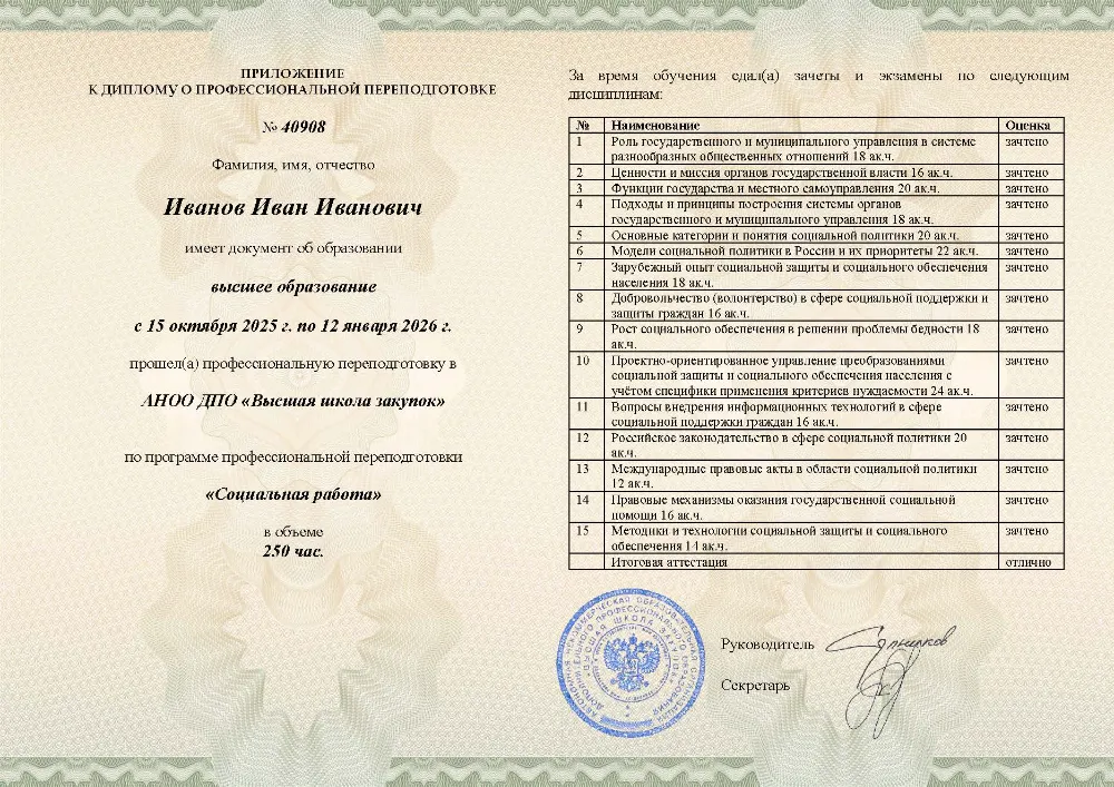 Это полноценная образовательная программа для получения дополнительной квалификации и освоения новой профессии. Для поступления также требуется высшее или среднее профессиональное образование (СПО). Итоговым документом является полноценный диплом о профессиональной переподготовке, который ценится на рынке труда. Программы являются наиболее объемными и начинаются от 250 академических часов, что обеспечивает глубокое погружение в специальность.